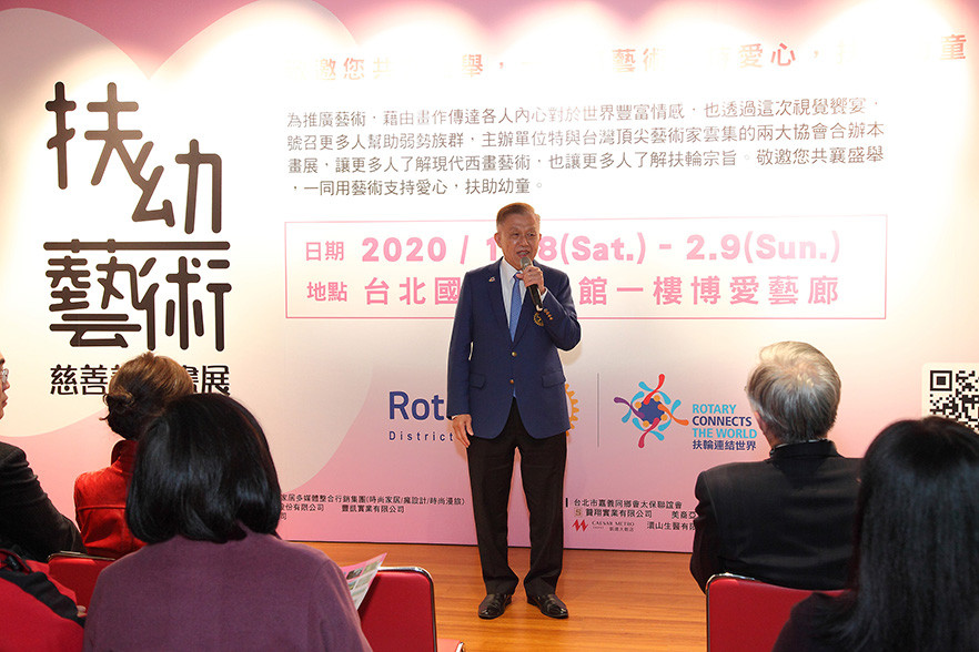 本次活動受到國際扶輪3523地區的社員熱烈的支持及響應,期盼用這一股的正面能量,拋磚引玉。讓此次活動能接軌國際扶輪社之運作,同時增進扶輪社友們的文化參與、開拓文化視野,亦促進社員間的親善友誼,進而擴展服務社會之機會,也喚起更多社會大眾對於弱勢族群的關心。現場除了展出名家的畫作並有扶輪社社員合唱表演,讓會場充滿文人薈萃的氣息。與會貴賓有國際扶輪3523地區總監邱鴻基、國際扶輪3523地區第三分區助理總監鄭玉章,中華民國油畫協會理事長蘇憲法、中華亞太水彩藝術協會理事長洪東標、贊翔實業總經理陳重典、凱達大飯店副總經理吳淑真等一起攜手傳愛。