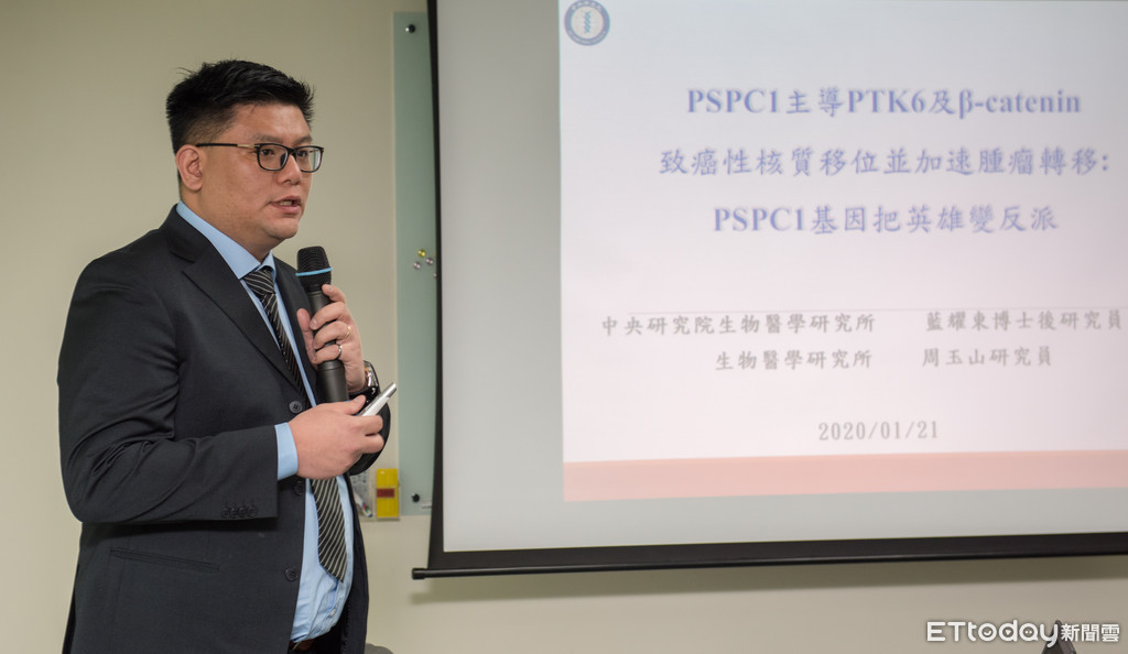 中研院生物醫學研究所研究員周玉山、博士後研究員藍耀東在2018年發現大量的PSPC1基因會促使癌細胞增生轉移,他們發現,PSPC1可以控制蛋白質於細胞核與細胞質間的進出,而在正常的細胞核裡,有一種酵素PTK6,它原本是會箝制住PSPC1、避免細胞癌化的「英雄」。然而,一旦PSPC1基因大量產生或發生突變,PTK6酵素便不再與PSPC1互相作用,反而會自行移動到細胞質中,並變成有致癌效果的「反派」。