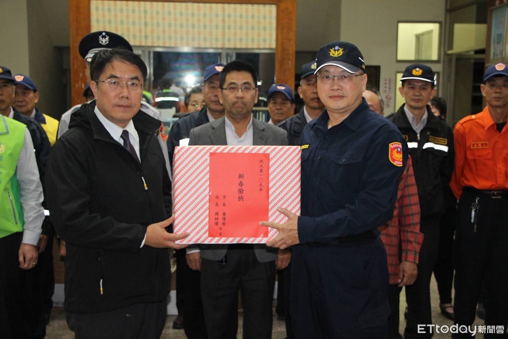 ▲台南市長黃偉哲率隊分7組赴各警察分局、消防分隊及社區守望相助隊等單位,慰問執勤人員辛勞。(圖/記者林悅翻攝,下同)