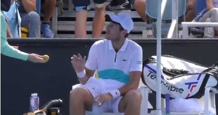 澳洲網球公開賽正如火如荼的進行中,除了精彩賽事備受關注,球員的一舉一動也是焦點。21歲法國選手本切里特(Elliot Benchetrit)在球場上要女球僮幫他剝香蕉,下秒就遭主審大罵,最後心不甘情不願用嘴巴咬開香蕉皮,引起熱議。