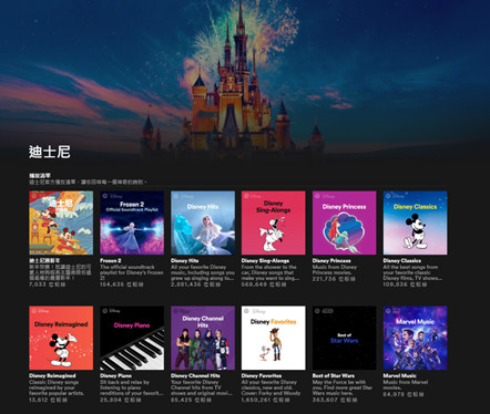 《迪士尼精選》: 集合所有迪士尼受歡迎的歌曲,包含亞洲歌手版本。農曆新年將至,Spotify還特別製作了農曆新年的迪士尼播放清單封面,祝大家春節愉快。