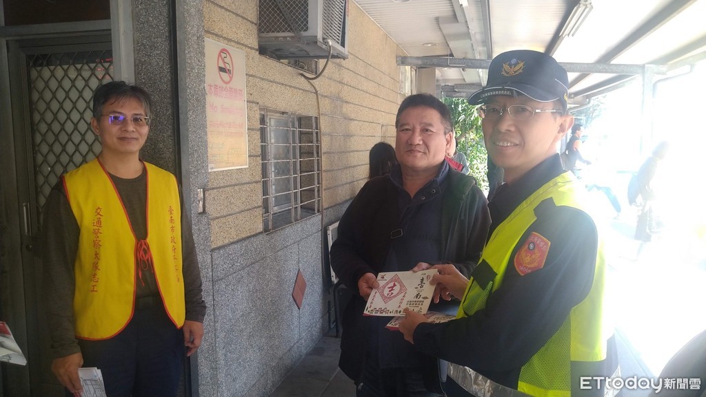 ▲台南市交通警察大隊員警前往台南火車站、轉運站等人潮聚集地,向民眾一一宣導各風景區交通管制措施。(圖/記者林悅翻攝,下同)