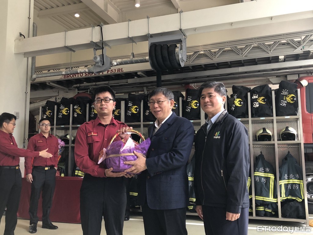 ▲柯文哲慰勞警消人員。(圖/記者楊亞璇攝,下同)