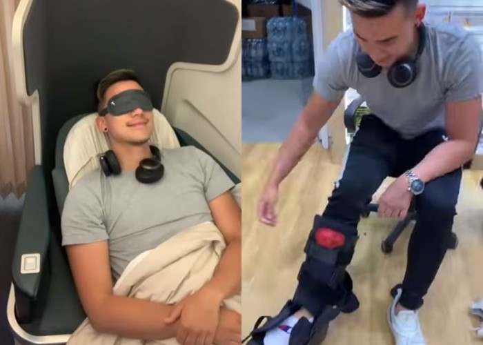 他於15日在Instagram及YouTube上傳一則影片,分享如何從經濟艙免費升級成商務艙。影片一開始,他表示將搭乘國泰航空從雪梨起飛,這時他想到一個免費升等到商務艙的辦法。首先他在機場藥局購買「骨折固定鞋」,並當場穿在右腳上,將自己裝扮成病人。隨後登機到經濟艙找到自己的位子入坐,由於固定鞋的體積太大,以至於他的右腳無法塞進座位。