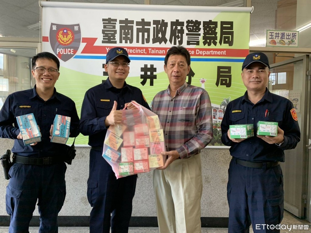 ▲台南市玉井分局長楊青垂為維護員警身體健康,與警友辦事處主任邱炳煌,準備口罩給執勤員警,讓員警執行勤務無後顧之憂。(圖/記者林悅翻攝)