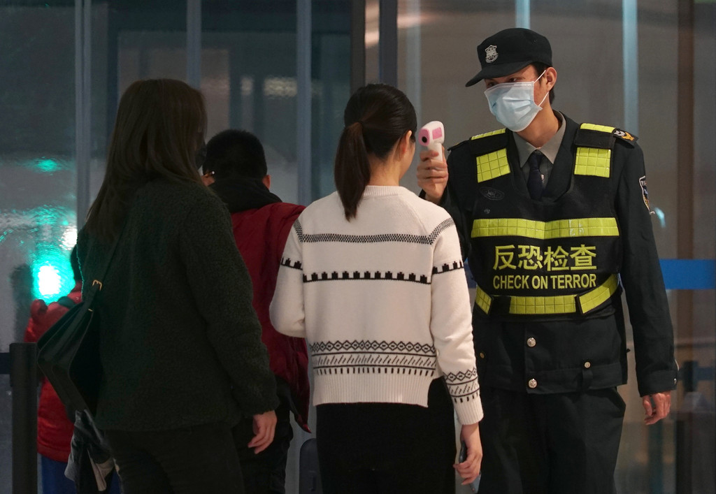 ▲武漢封城前,武漢機場對進出旅客實施體溫測量。(圖/達志影像/美聯社)