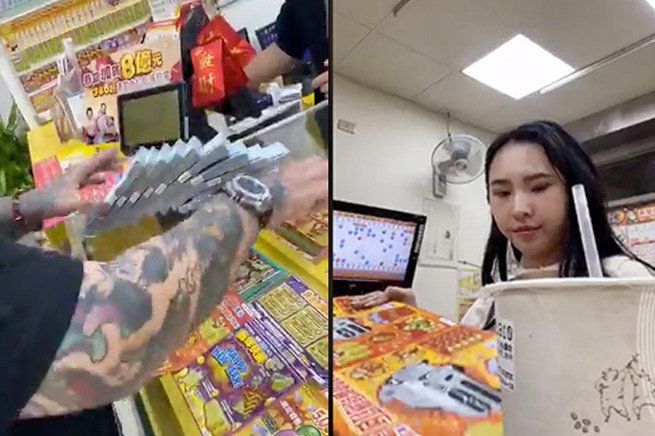 ▲直播主拿100萬現金去刮2000元刮刮樂。(圖/翻攝自Facebook/伊果國外精品代購)