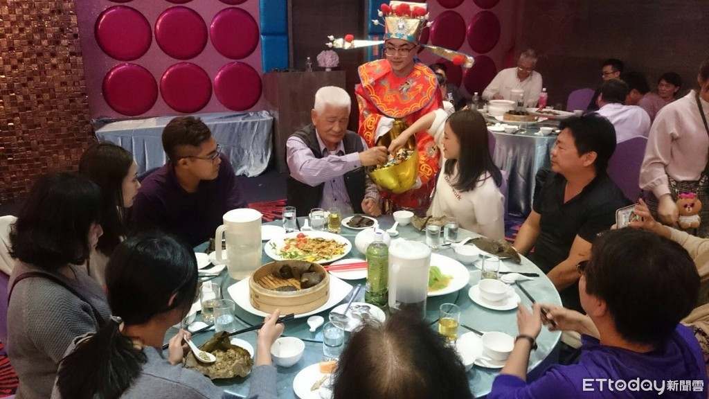 ▲雲林三好國際酒店2020年除夕夜安排財神爺於民眾團圓餐席間逐桌互動,用餐民眾大讚有財有喜。(圖/記者蔡佩旻翻攝)