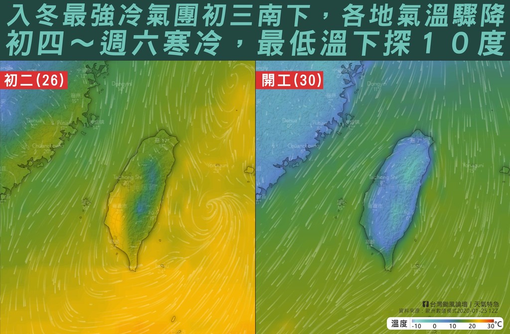 ▲開工日天氣寒冷。(圖/翻攝自Facebook/台灣颱風論壇|天氣特急)