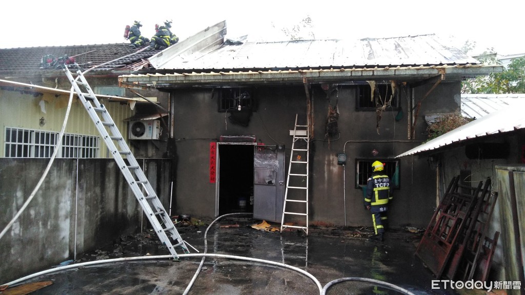▲台中沙鹿區臺灣大道七段28日凌晨6時許傳出火警,目前確定1死1傷。(圖/記者鄧木卿翻攝)