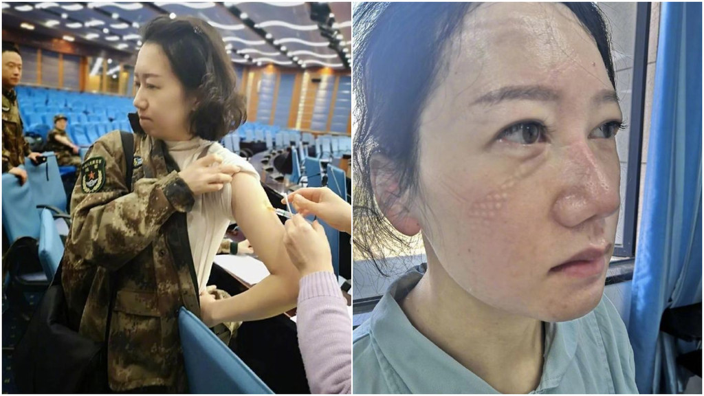 ▲解放軍陸軍軍醫大學醫療隊員、西南醫院肝膽科主管護士劉麗。(合成圖/翻攝自Facebook/人民日報)