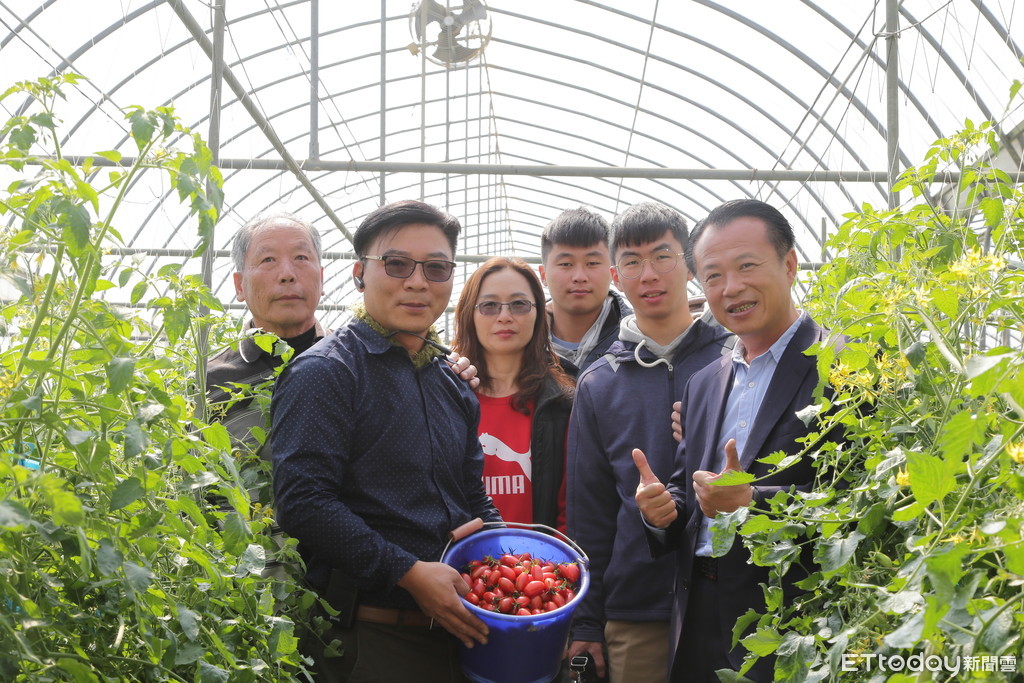 ▲翁章梁聽取張耿赫番茄園種植實務經驗。(圖/記者翁伊森翻攝)