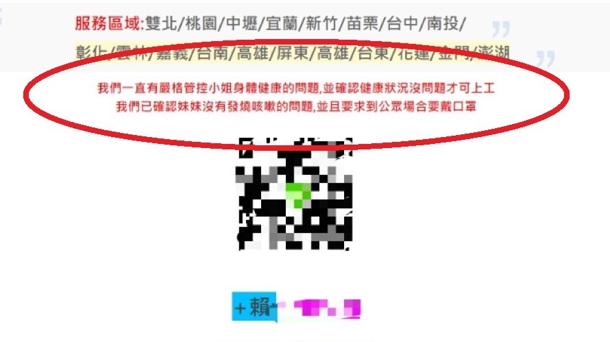 另外,色情業者也表明,嚴格控管小姐的身體健康問題,要確認旗下小姐身體狀況無虞才能上工,也要求出入公共場合要戴口罩,也要客人赴約時能夠戴口罩,但警方指出,性交易為違法行為,民眾千萬不要以身試法。