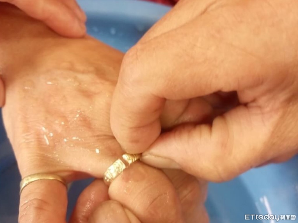 消防人員表示,該名婦人到消防隊求救時說明戒指平時就有配戴,並非新購尺寸並無不合,從春節就卡住到今天,擔心手指會保不住,警消人員見他右手手指關節處已腫脹發紅,為防止中指組織壞死立即進行處置。