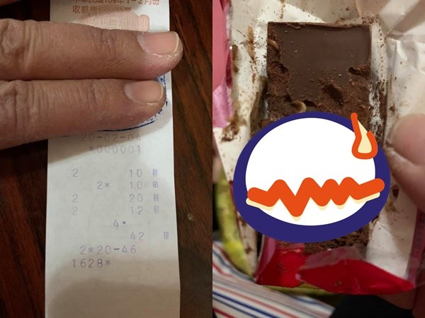 原PO附上發票證明是4日購買,且巧克力的有效期限到民國109年3月23日,「我沒有要告或者檢舉,只是希望大家以後吃東西前,務必小心先看一下吧!」