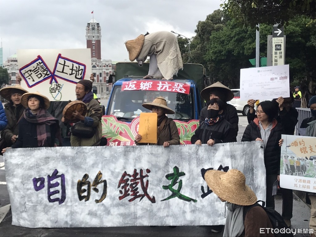 ▲反西港外環道不當開關自救會北上總統府,為台灣糖業鍛道文化資產發聲。(圖/記者許展溢攝)