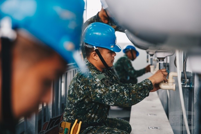 軍工組的課程,則著重在生活設施及水電實務的課程,授課內涵更因應目前國軍全面推動志願役兵舍改善及興建工程,強化培養工程專業人員,使官兵能夠投入執行工程規劃與施工管理,以及兵舍設施修繕的能力,來達到提升官兵生活品質的成效。