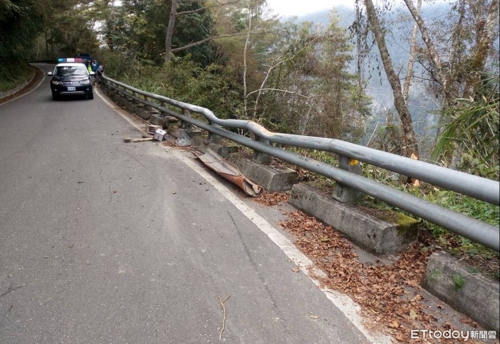 ▲ 員警抵達台20線162公里處(摩天段)現場,發現路邊護欄有磨擦痕跡,地上有掉落物。(圖/記者楊鈞典翻攝)