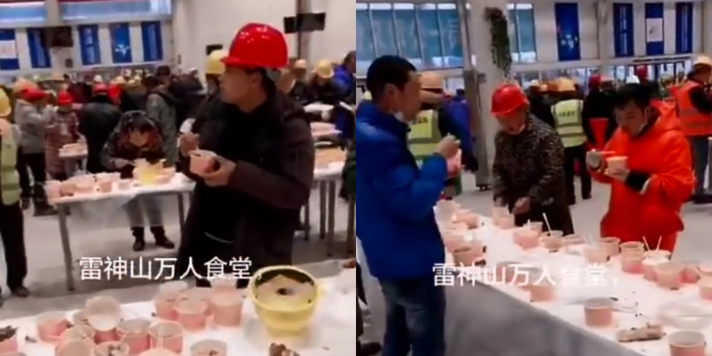 殊不知,現在抖音與微博瘋傳一段「萬人食堂開餐」畫面,地點竟在雷神山醫院裡頭,大批工人站著吃飯,有的沒戴口罩,有人正在用餐,因此把口罩拉至下巴,儘管大家各吃各地,礙於沒有任何隔離措施,就怕引發群聚感染風險。