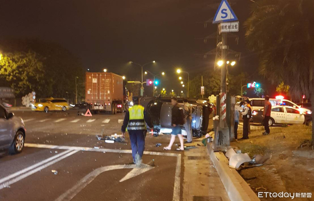 ▲▼小港7日晚間傳出連環車禍,警方研判應為酒駕釀禍。(圖/記者洪正達翻攝,下同)