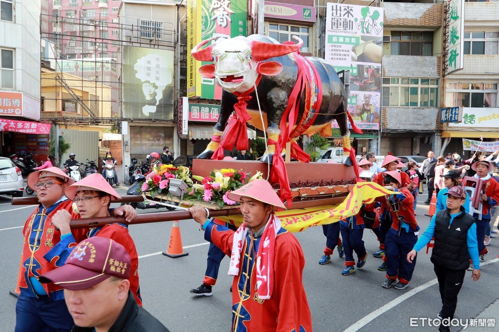 ▲台南庚子年迎春禮祭天儀典於東門城進行,隨後展開踩街嘉年華會、祭芒神迎春牛儀式,台南市長黃偉哲等人熱鬧參與。(圖/記者林悅翻攝,下同)