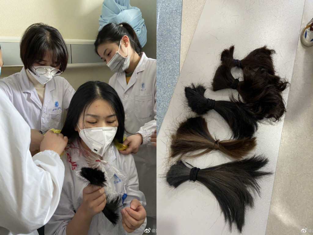 醫院肝膽外科護士長葛琳說,「剪掉長頭髮,方便穿防護服,而且照料病人,沒時間天天洗澡洗頭髮。」此外,剪掉長髮可以降低傳染風險,同時也可以避免出汗、滋生細菌。
