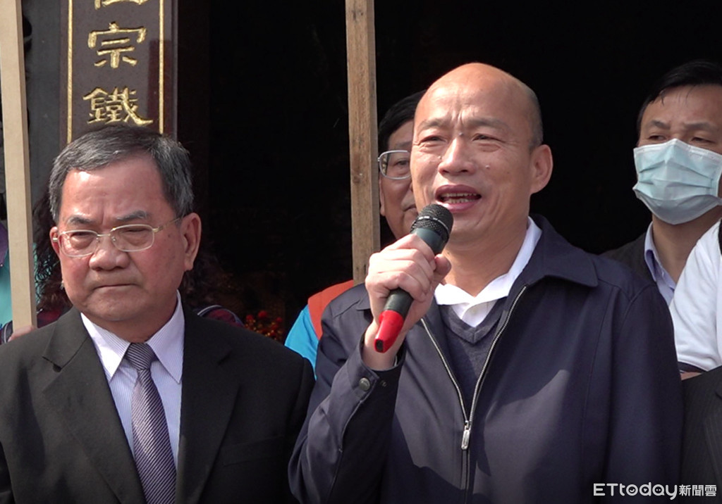 ▲韓國瑜9日上午到苓雅區萬應公廟參拜未戴口罩。(圖/記者洪正達攝)