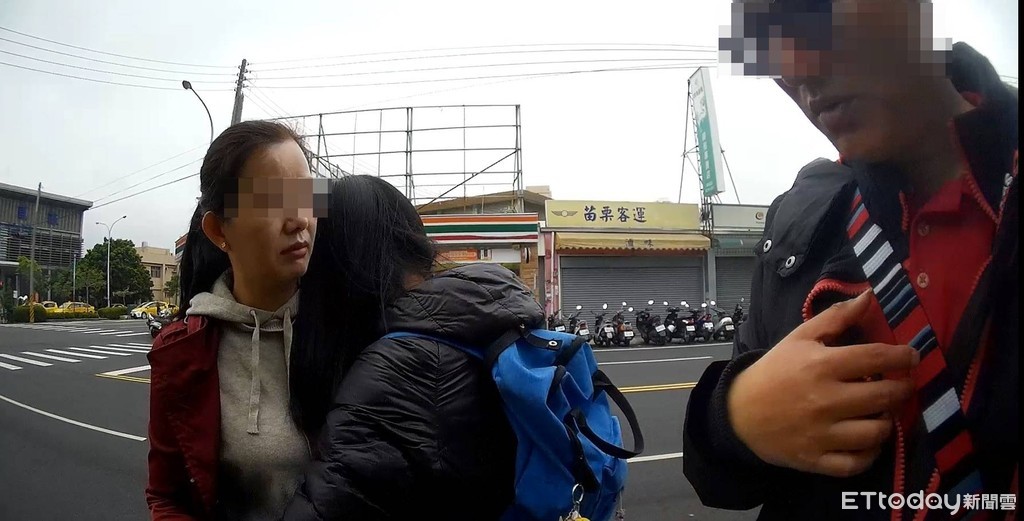 ▲走失的楊姓女童,被警尋回後,看見自己的母親立刻相擁而泣在路邊。(圖/記者黃孟珍翻攝)