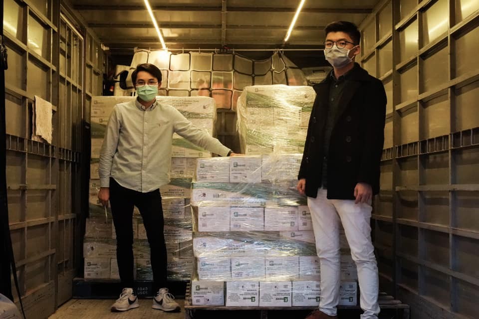 香港眾志秘書長黃之鋒11日下午發文表示,經過連日緊張跟進,眾志從美國採購的十萬個口罩,現已安全到埗並順利清關,剛趕赴機場取貨,終於可跟大家宣布這項好消息,「這批次的十萬個口罩,部分會交由友好民主派區議員協助社區有需要人士,其餘會在眾志網店以低於成本價發售。」