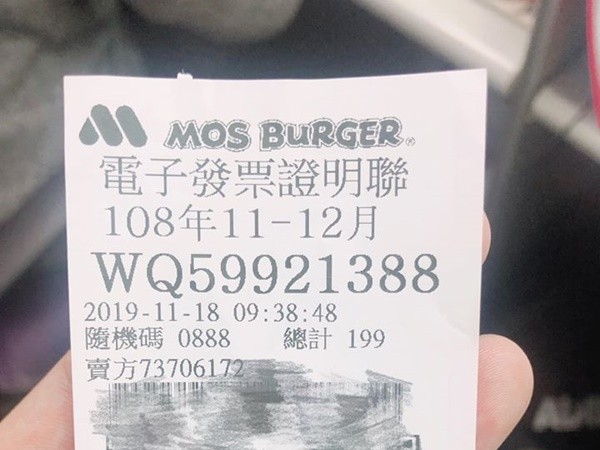 ▲一名網友吃199元的摩斯漢堡,對中發票的2獎。(圖/翻攝爆廢公社)