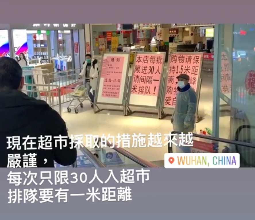 近年淡出娛樂圈的胡淽喬(前名:胡心諾Rainbow)為了陪伴男友願留在武漢,目前她仍然身處離武漢市中心一小時車程的鄉鎮,更不時在IG直擊當地情況。在最新一則 IG Story,她就講到封城後19日,當地的超市採取的措施越來越嚴謹,每次只限30人進店,每人排隊的距離更要求至少在一米!