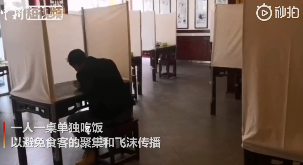 綜合陸媒報導,這家牛肉麵館近日復工開業,為避免顧客聚集和飛沫傳染,只能採取「一人一桌」單獨吃飯的措施,確保店內工作人員及顧客的安全。