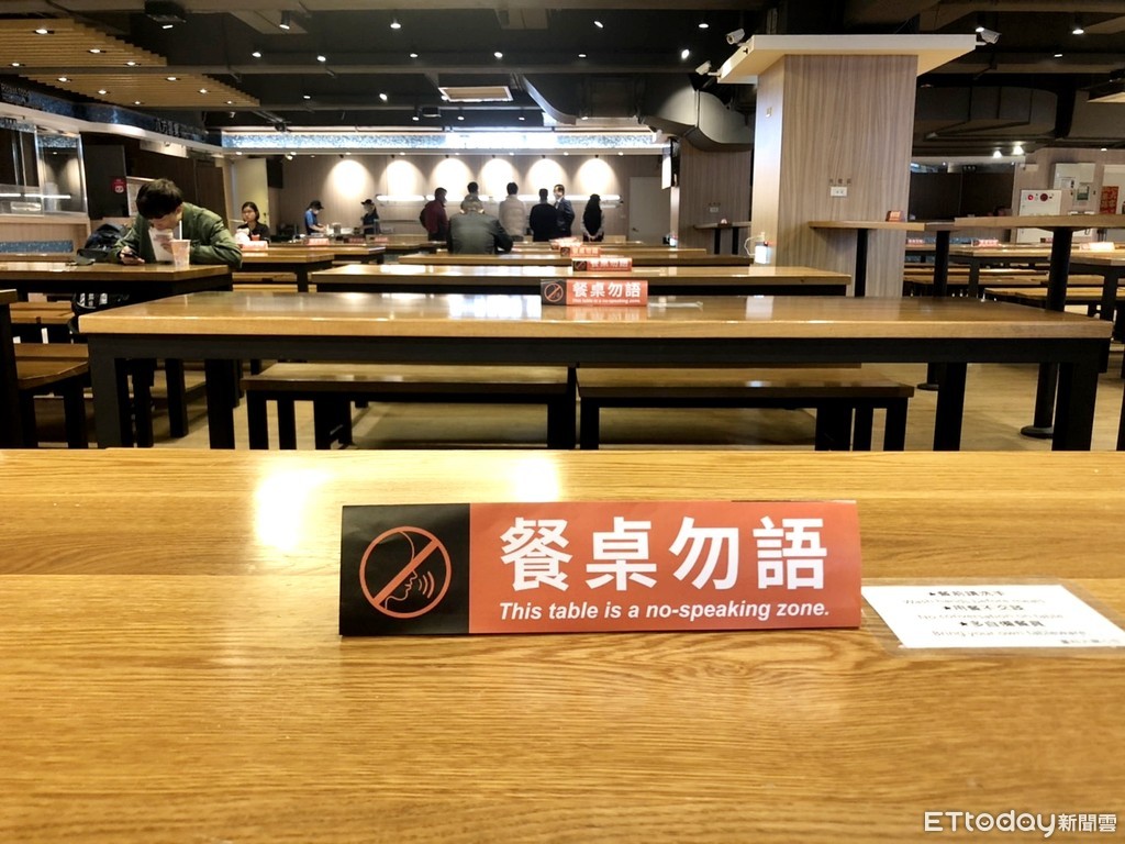 ▲台科大設計校園防疫標語,提醒師生在密閉的公共場合減少交談。(圖/台灣科技大學提供)