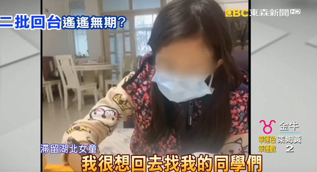 除了兩姊弟的喊話,日前還有一名滯留湖北的女子指出,孩子對她說「媽媽我不要再吃白麵條了」,讓她相當痛心,明明沒有患病,為何要被留在湖北,「寶瓶星號一千七百人,都可以配合檢疫隔離回家,為什麼置我們(滯留湖北台人)於不顧?」