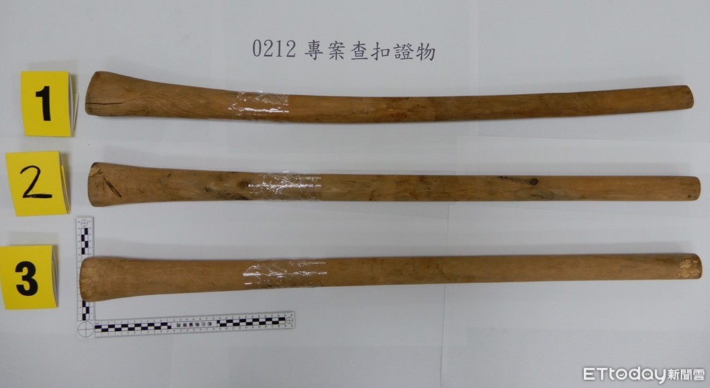 ▲彰化縣警局查扣犯嫌手持的木棍。(圖/彰化縣警局提供)