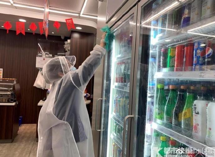 據《都市快報》報導,馬皆伶說,「早上8點到店裡後,我和另一名店員會用裝有酒精的噴壺噴灑冷櫃、貨架、操作台這些顧客經常觸碰的位置,並用一次性擦手巾全部擦拭一遍,這樣的工作每隔兩個小時就會重複一次,尤其是收銀台這邊,只要結一次賬,就需消一次毒,雖然是挺麻煩的,但是老話說『不怕一萬,就怕萬一』,現在這種情況下不容許出一點點差錯。」