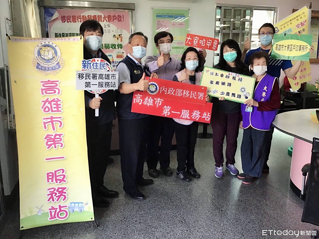 ▲移民署南區事務大隊高雄市第一服務站行動列車14日結合高雄市大寮區戶政事務所駐點推廣線上申辦服務,共同防範新冠病毒 。(圖/記者陳崑福翻攝,以下同)
