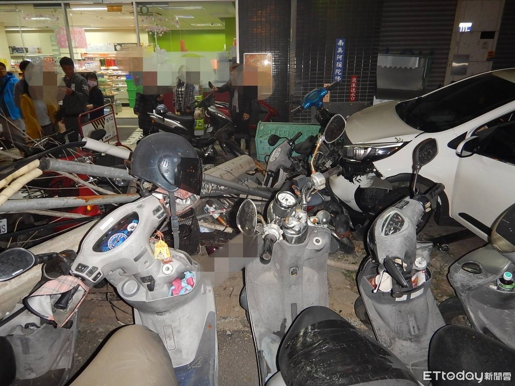 太平警方隨後也到場採證,發現共有18輛機車遭到波及,連電線桿都攔腰折斷,所幸沒有其他人受傷。警方也進行酒測,確認董男沒有酒駕。