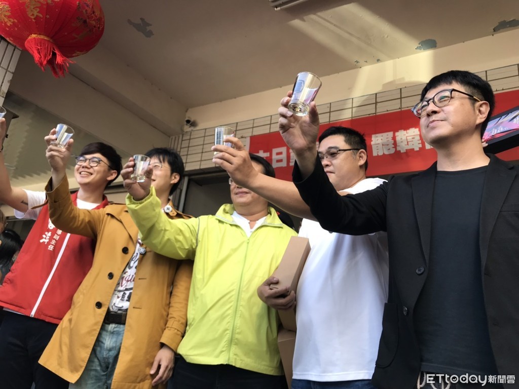 ▲罷韓衝破30萬舉杯慶祝。(圖/記者洪靖宜攝)
