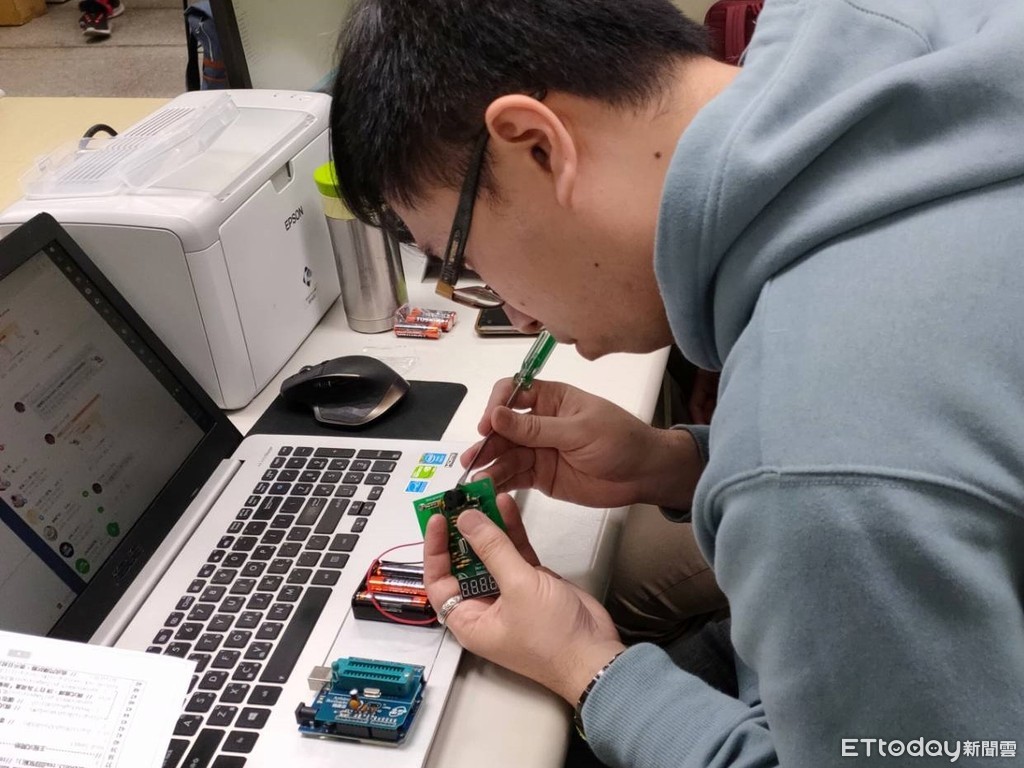 ▲參加研習教師現場體驗動手自製校園版額溫槍。(圖/新北市教育局提供)
