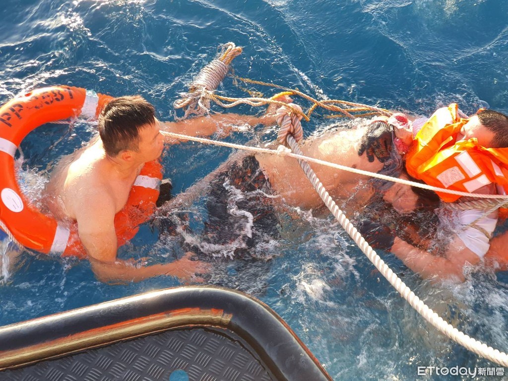 ▲海巡隊將羅姓船長救起。(圖/記者許宥孺翻攝)