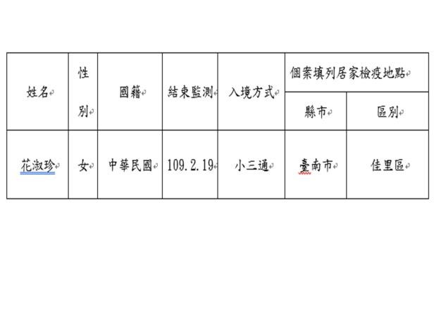 新冠肺炎(COVID-19)疫情不斷傳出,台灣16日更是傳出首起死亡案例,中央、地方政府皆嚴陣以待。台南市政府17日晚間6點30分公告,一名花姓女子透過小三通回台,應接受居家檢疫的義務,但17日晚間主管機關多次聯繫不到人,因此公開花女資料,希望各界能一同協尋。這也是防疫政策推出以來,台南首次出現居家檢疫卻失聯的狀況。