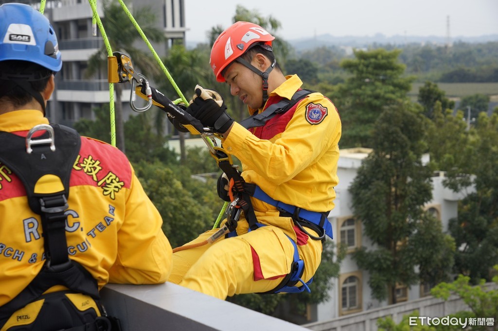 ▲台南市消防局辦理救助師資班複訓,增進消防人員繩索救助操作技術,提升人命救助之效率。(圖/記者林悅翻攝,下同)