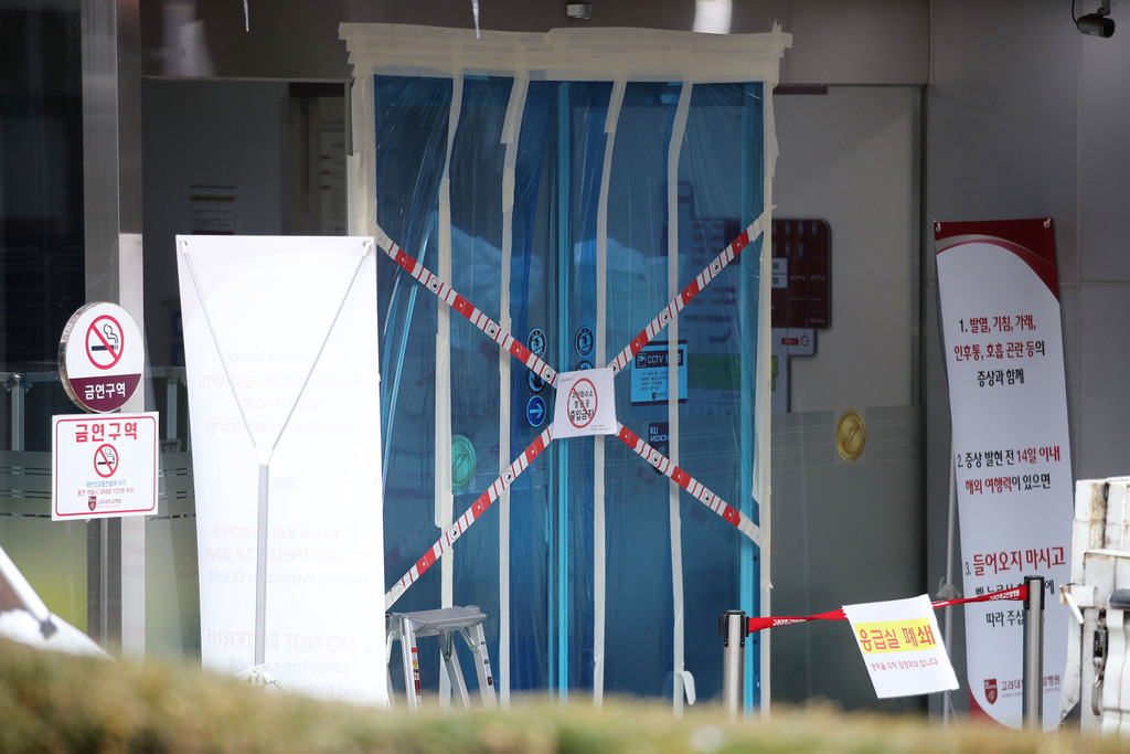 ▲ 首爾一家醫院出現確診患者後封鎖急診室。(圖/達志影像)