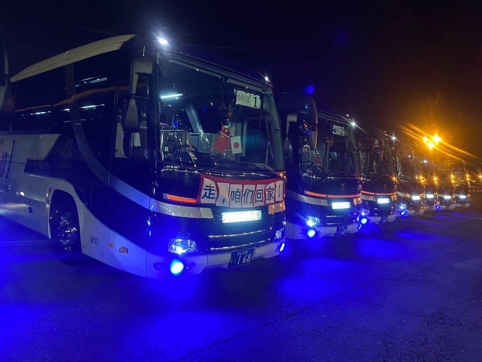 ▲遊覽車接送「鑽石公主號」港人赴機場。(圖/陸外交部駐香港特別行政區特派員公署,下同。)