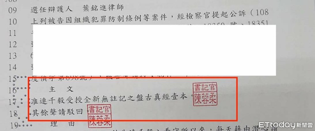 ▲法官裁定禁見中的連千毅可以收受這一本盤古真經 。(圖/記者吳奕靖翻攝)