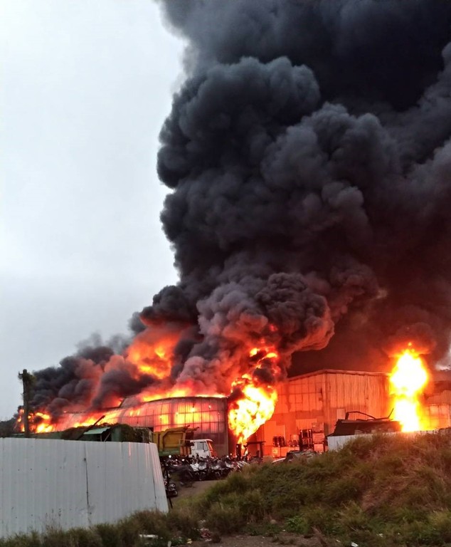 新竹縣消防局表示,起火的工廠為開放式鐵皮屋,因起火後火苗燃燒至廠內的報廢零件,火勢來得又快又猛,遠遠就可以看到一片火海及直竄天際的濃煙,新竹縣消防局派員到現場灌救,不過因為溫度極高,直到晚間8點多才撲滅。