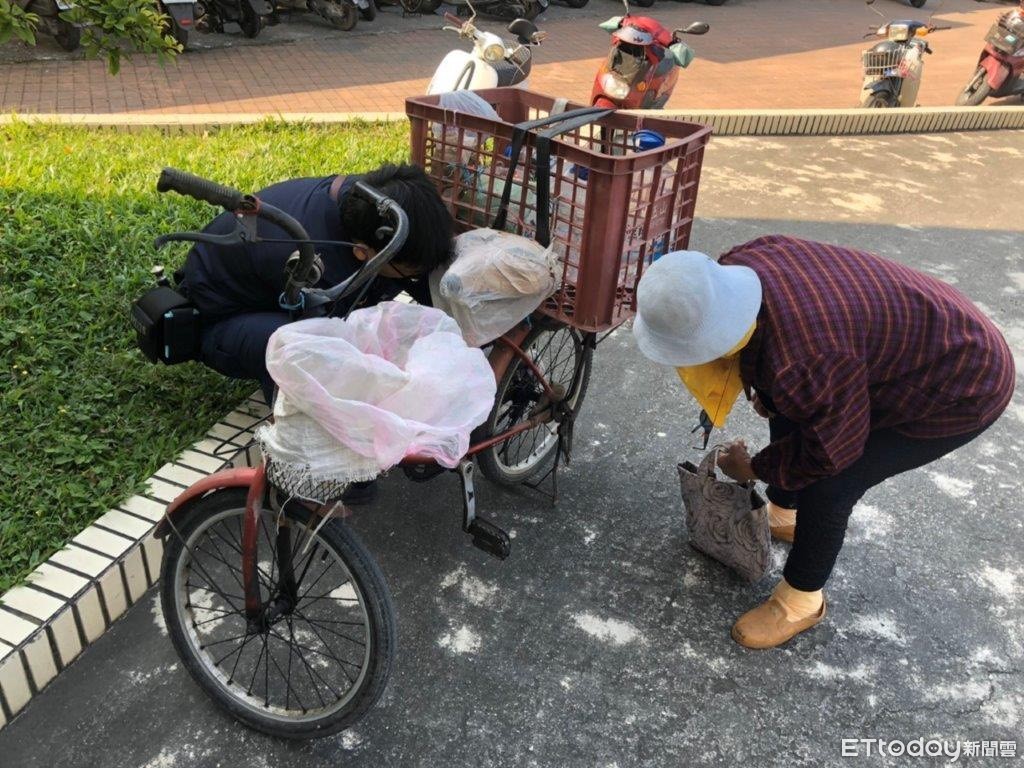 警方表示,71歲的羅姓老阿嬤由崁頂鄉園寮村訪友後騎乘腳踏車要返回潮州鎮住家,但腳踏車騎至中正路與後壁路口時,卻發現腳踏車突然「落鏈」,她一人獨自蹲在大馬路旁修理半天,都無法修好,心裡很著急,不知如何是好。