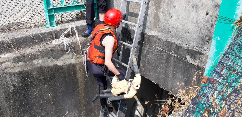 救護人員表示,接獲通報該溝渠疑似有屍體沉浮水面,因此緊急派出消防員到現場。抵達現場後,由於溝渠深度高約5公尺,由路面上方目測無法辨別溺者面容,因此只好架設梯子,下到發臭溝渠去進行搶救。