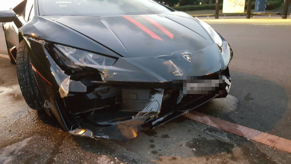 新北市淡水漁人碼頭23日下午5時許發生一場自撞車禍,一輛失控的藍寶堅尼「小牛」自撞護欄,駕駛59歲鄧姓男子所幸無大礙,他初步表示小牛是租來的,當時正要去找朋友,因為不熟悉車子性能才會失控自撞,酒測後並無酒駕情事。